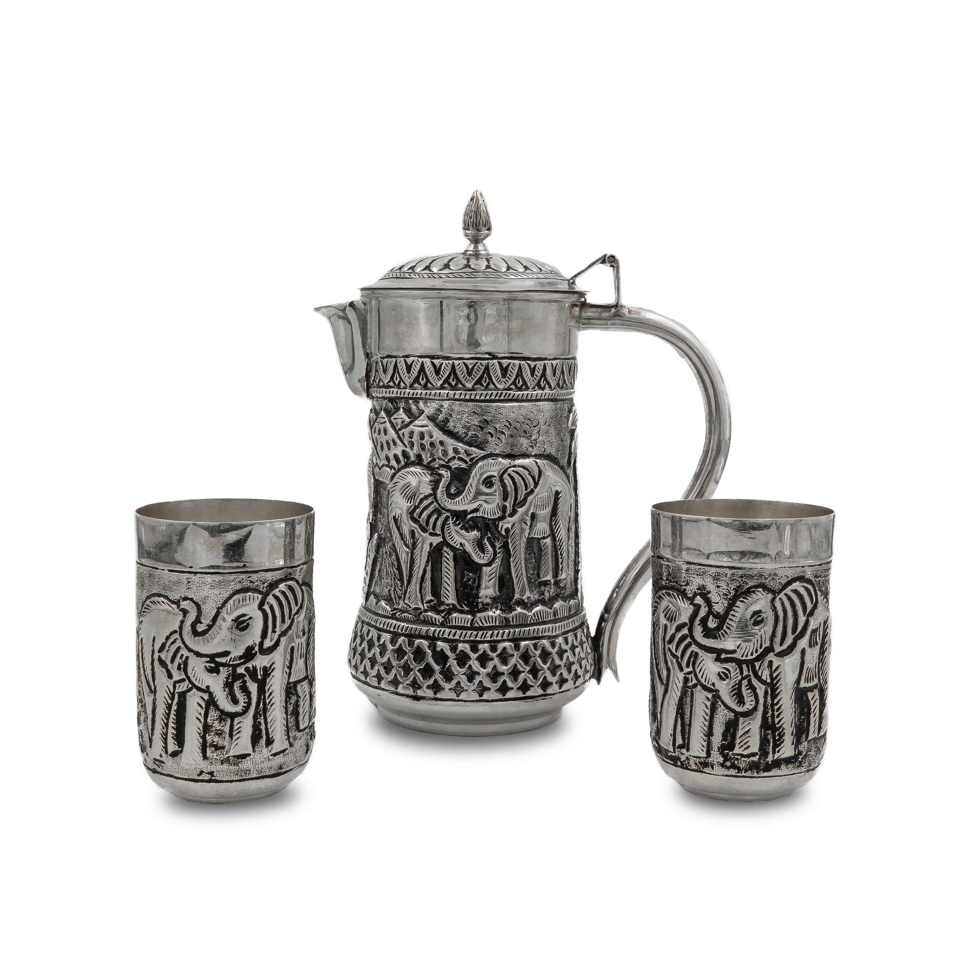925 silver Elephant Water Jug & Glass Set