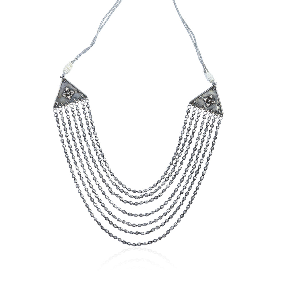 Amaris Silver Tone Cascading Bib Necklace with Triangular Elements