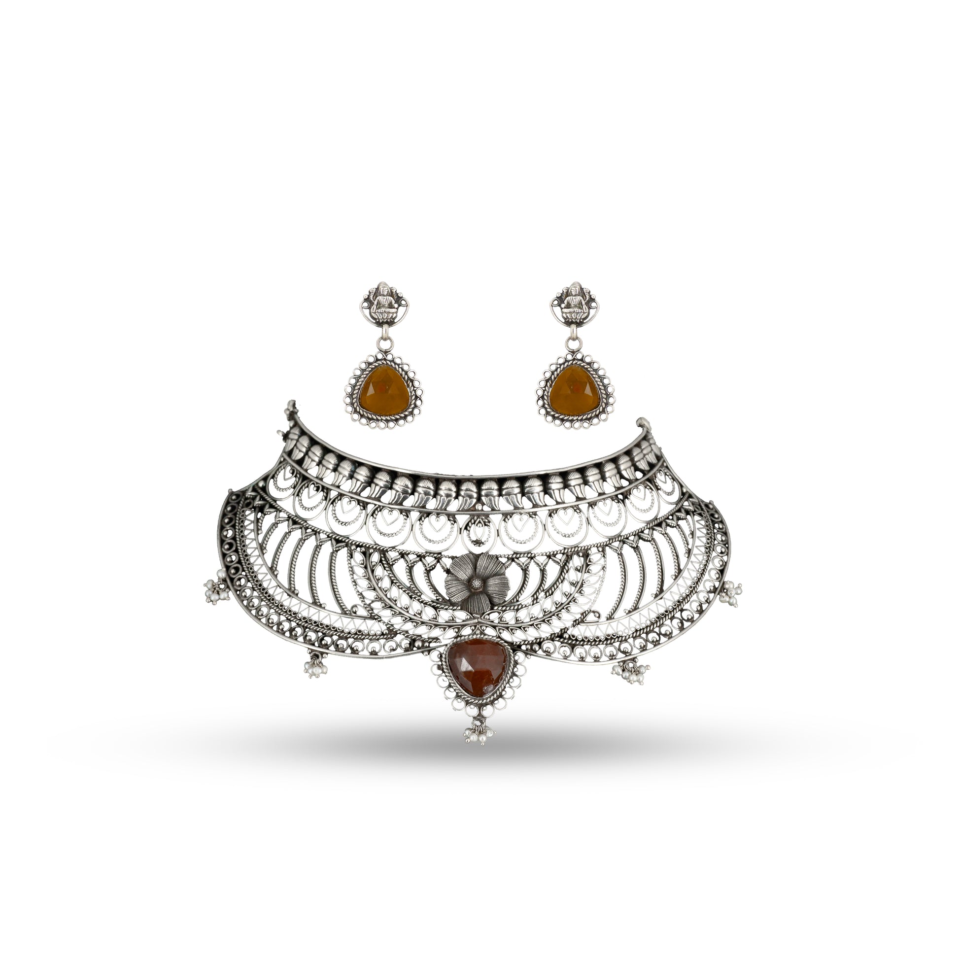 Carnelian Filigree Collar 925 silver Floral Necklace