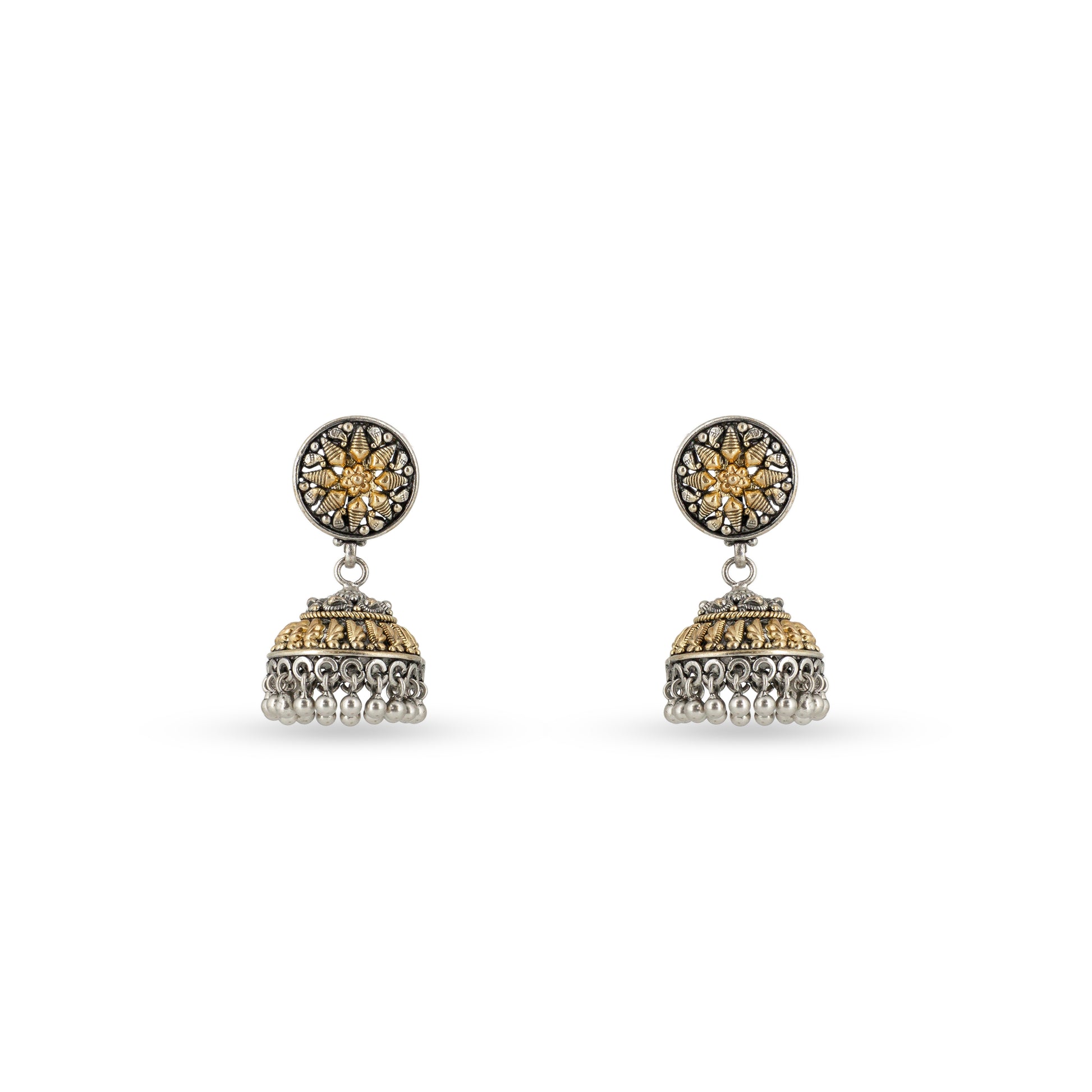 Floral Jhumka 925 silver Antique Gold Drop Earrings