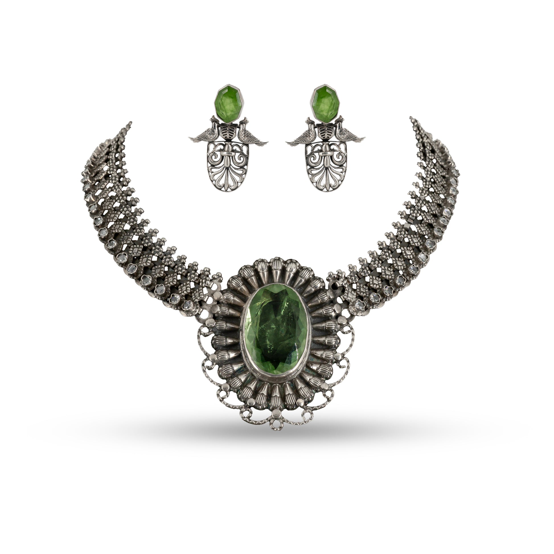 Green Peridot Victorian 925 silver Choker Necklace Set
