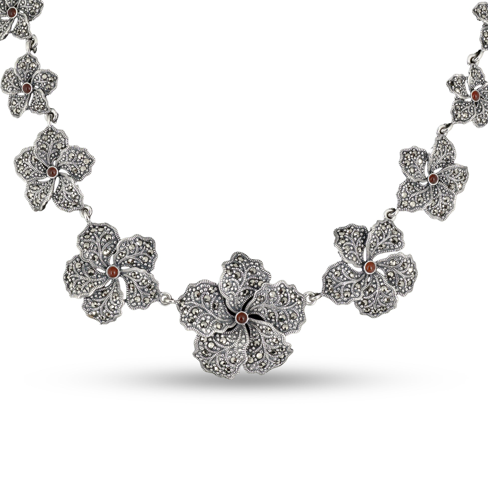 Hibiscus Marcasite 925 silver Statement Floral Necklace