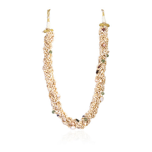Multi-Strand Seed Pearl Necklace with Peridot, Garnet, and Iolite Accents