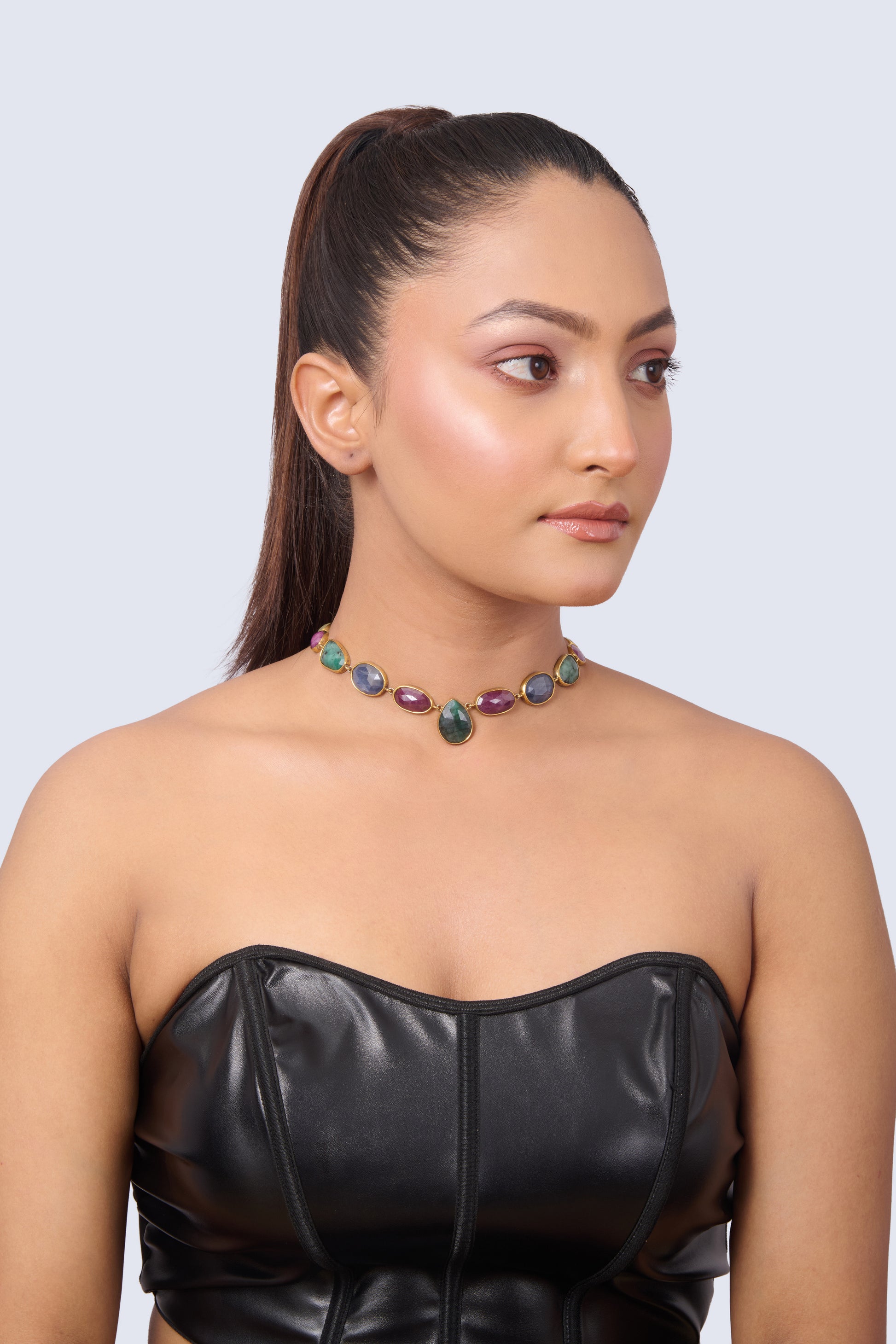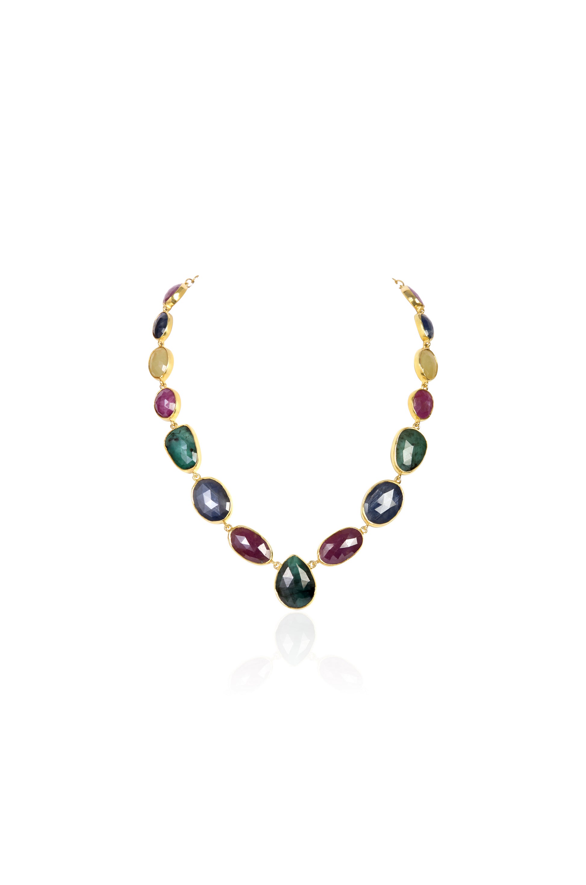 Necklace with Sapphire, Emerald, Ruby, Citrine, and Amethyst Gemstones