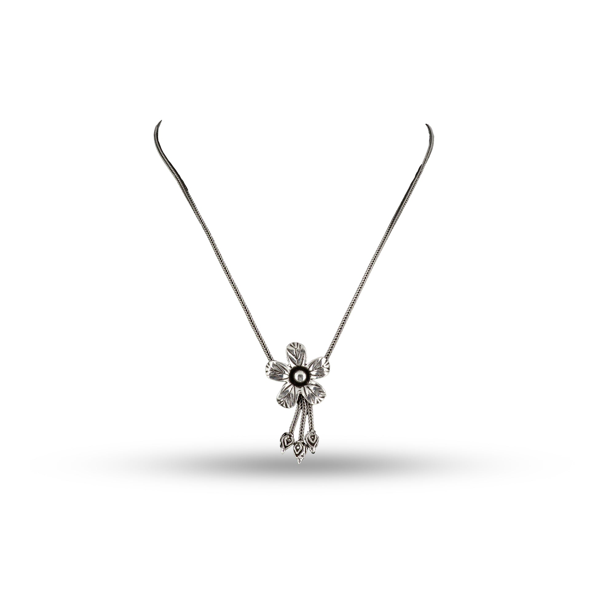 Oxidised Floral 925 silver Minimal Pendant Necklace