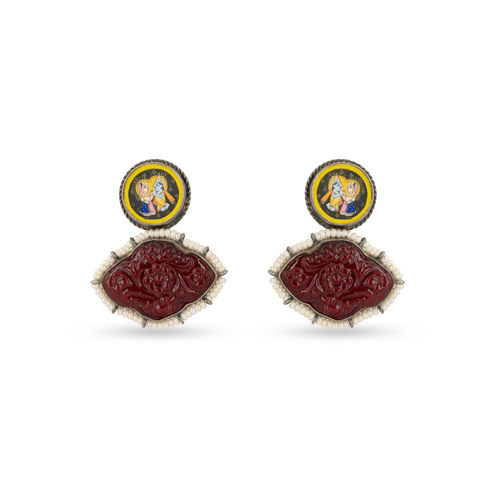 Radha Krishna Meenakari 925 silver Art Earrings