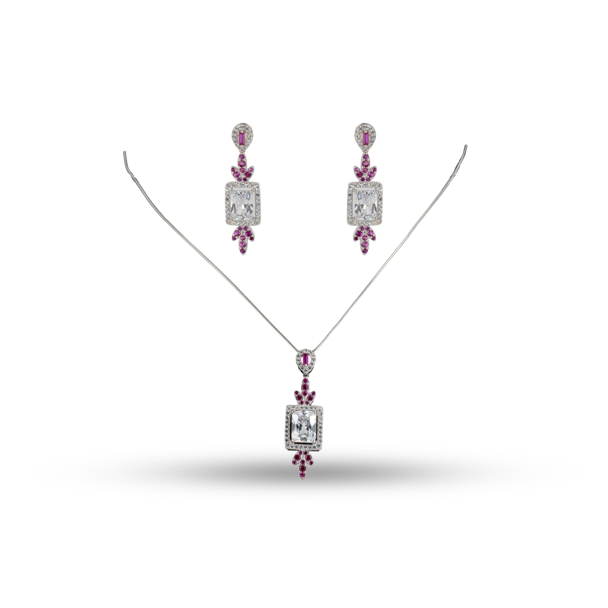 Ruby CZ Drop 925 silver Minimal Necklace Set
