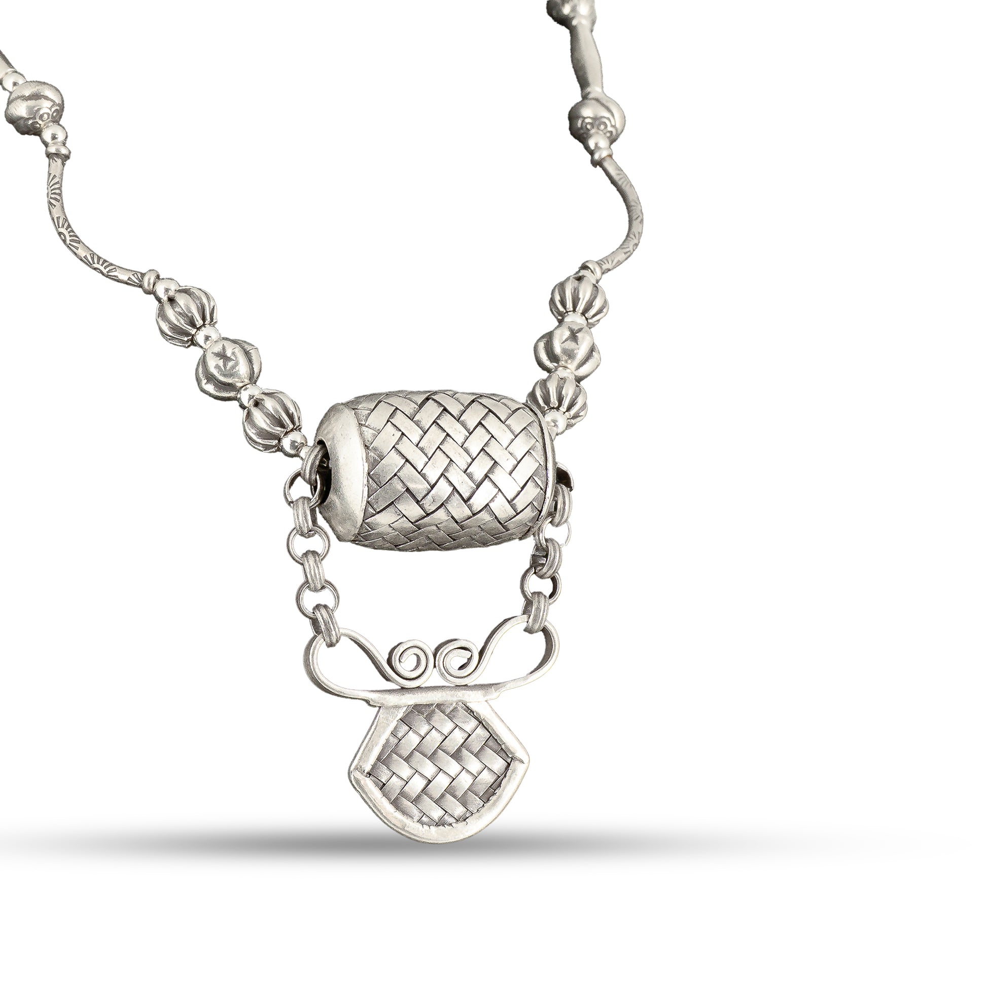 Woven Barrel Pendant 925 silver Minimal Necklace